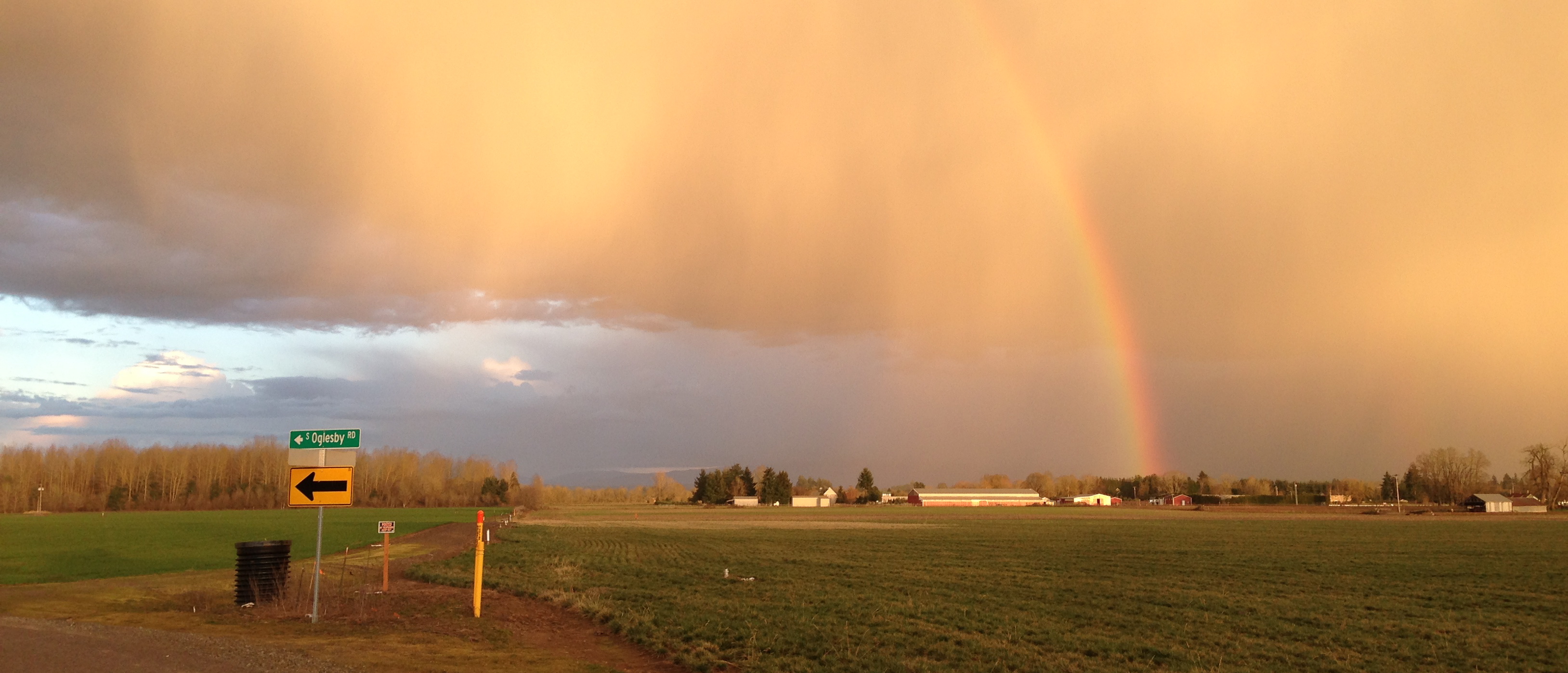 Yellow rain clouds, blue skies, rainbow’s end